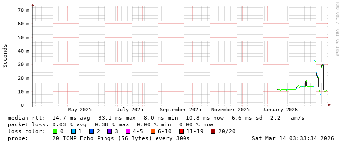 Latency from TeenTelecom to main Internet content