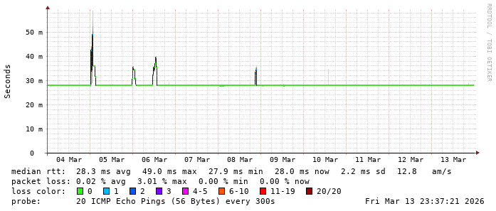 Latency from TeenTelecom to main Internet content