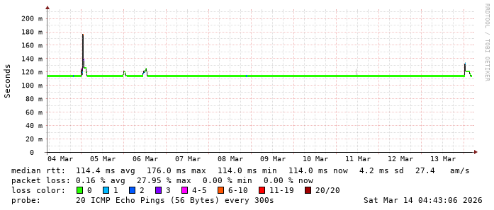 Latency from TeenTelecom to main Internet content