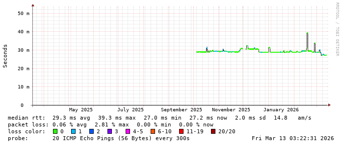 Latency from TeenTelecom to Romanian ISP