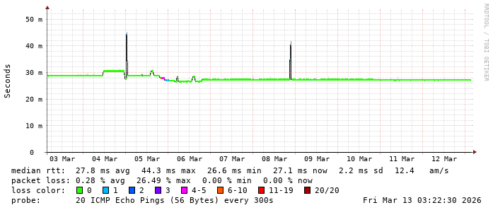 Latency from TeenTelecom to main Internet content