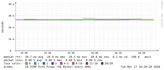 Latency from TeenTelecom to Romanian ISP