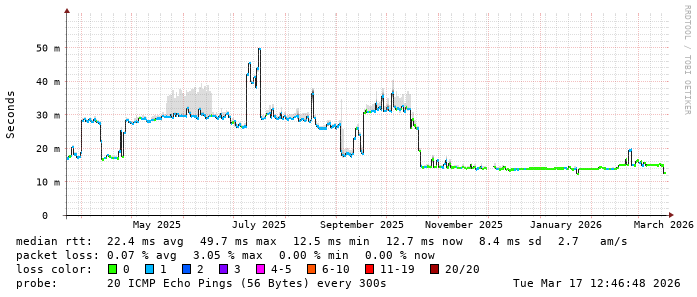 Latency from TeenTelecom to Romanian ISP