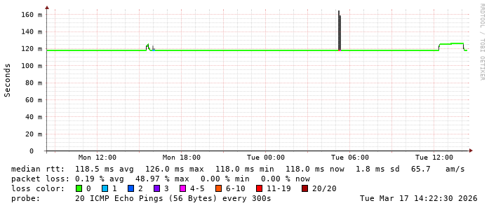 Latency from TeenTelecom to Root dns