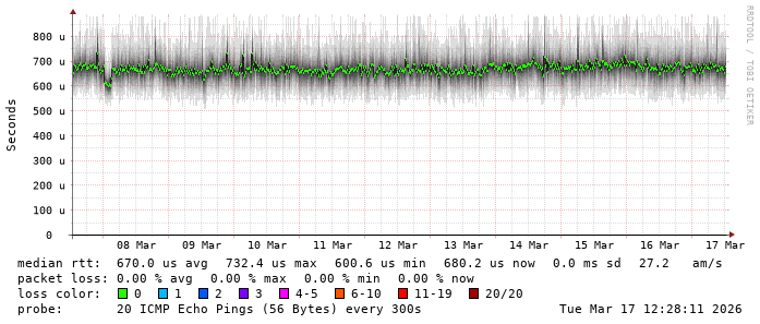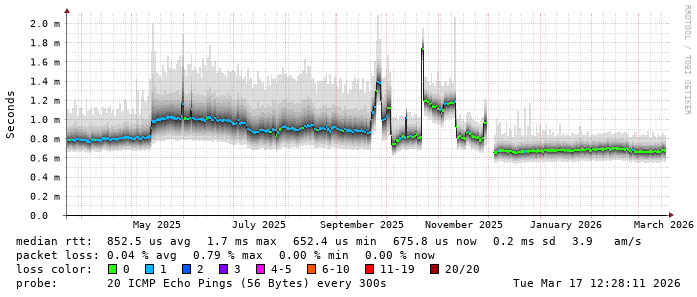Latency from TeenTelecom to Romanian ISP